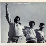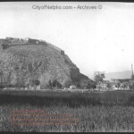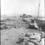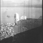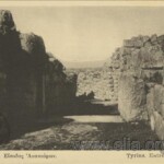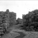 Άντρες και αγόρια στον προμαχώνα της ανατολικής πλευράς του κυκλικού οχυρώματος της ακροπόλεως το 1922.